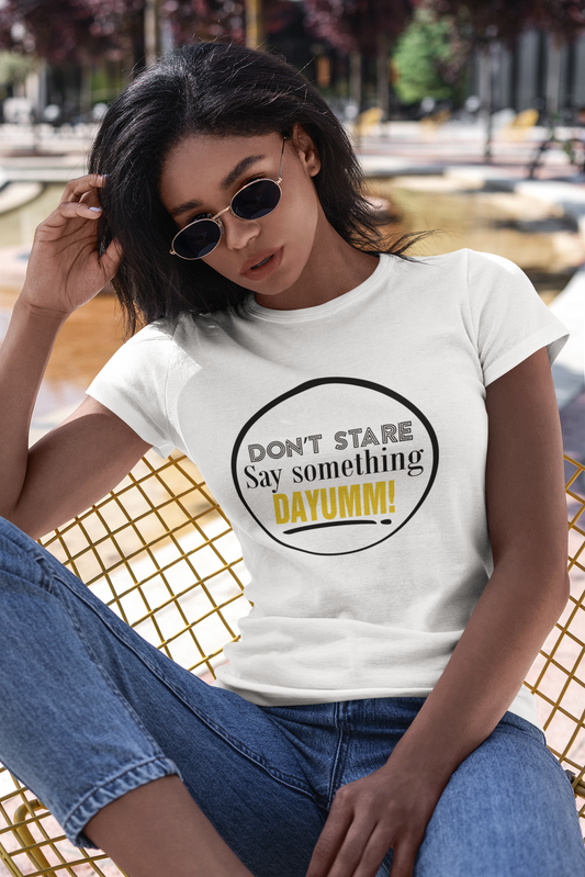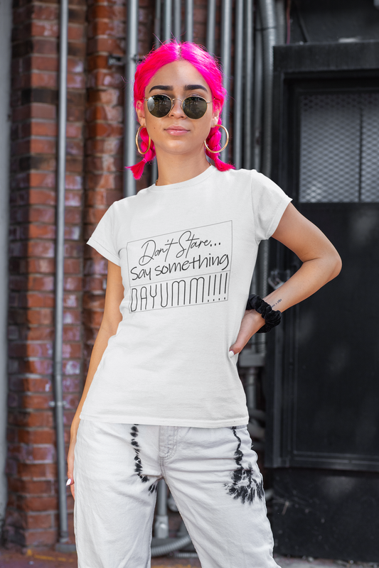 Don't Stare Say Something DAYUMM - Casual - Fitted Women's Tee